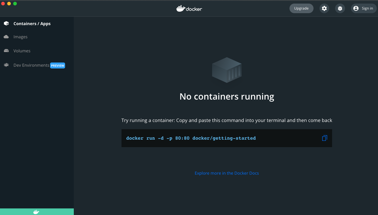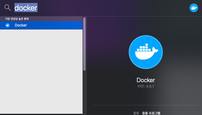 아래와 같이 docker 를 검색하여 실행을 최초로 해줘야 CLI 로 도커 사용이 가능하다.