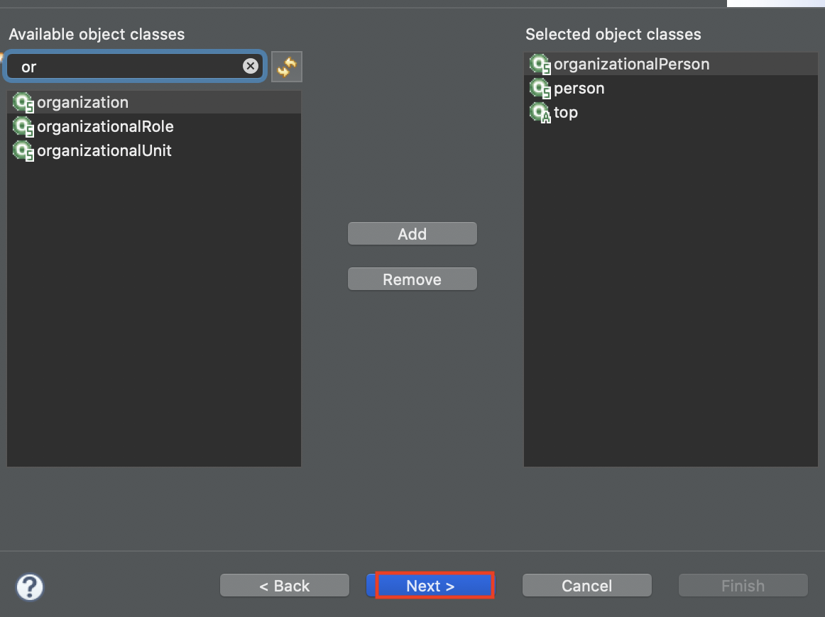 organizationalPerson 추가시 필요한 class 도 자동으로 추가된다.
