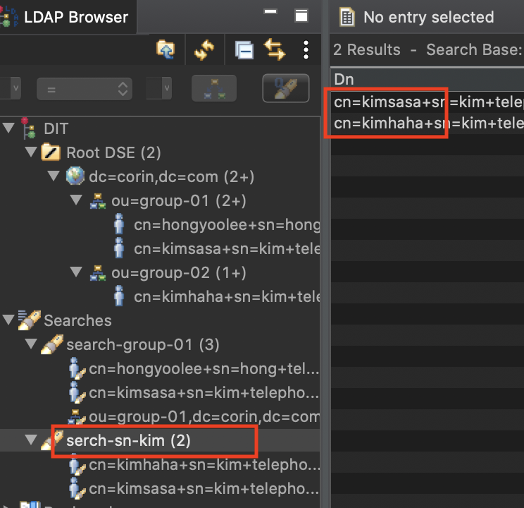 전체 그룹에서 kim 성을 가진 사용자를 찾는다고 하면 아래와 같이 필터를 만들 수 있다.