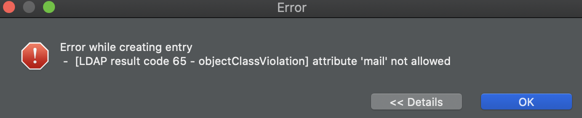 additional info: attribute 'mail' not allowed