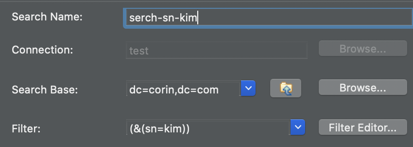 적당한 검색 명칭과, 찾을 DN, 필터를 선택하고 생성한다.
