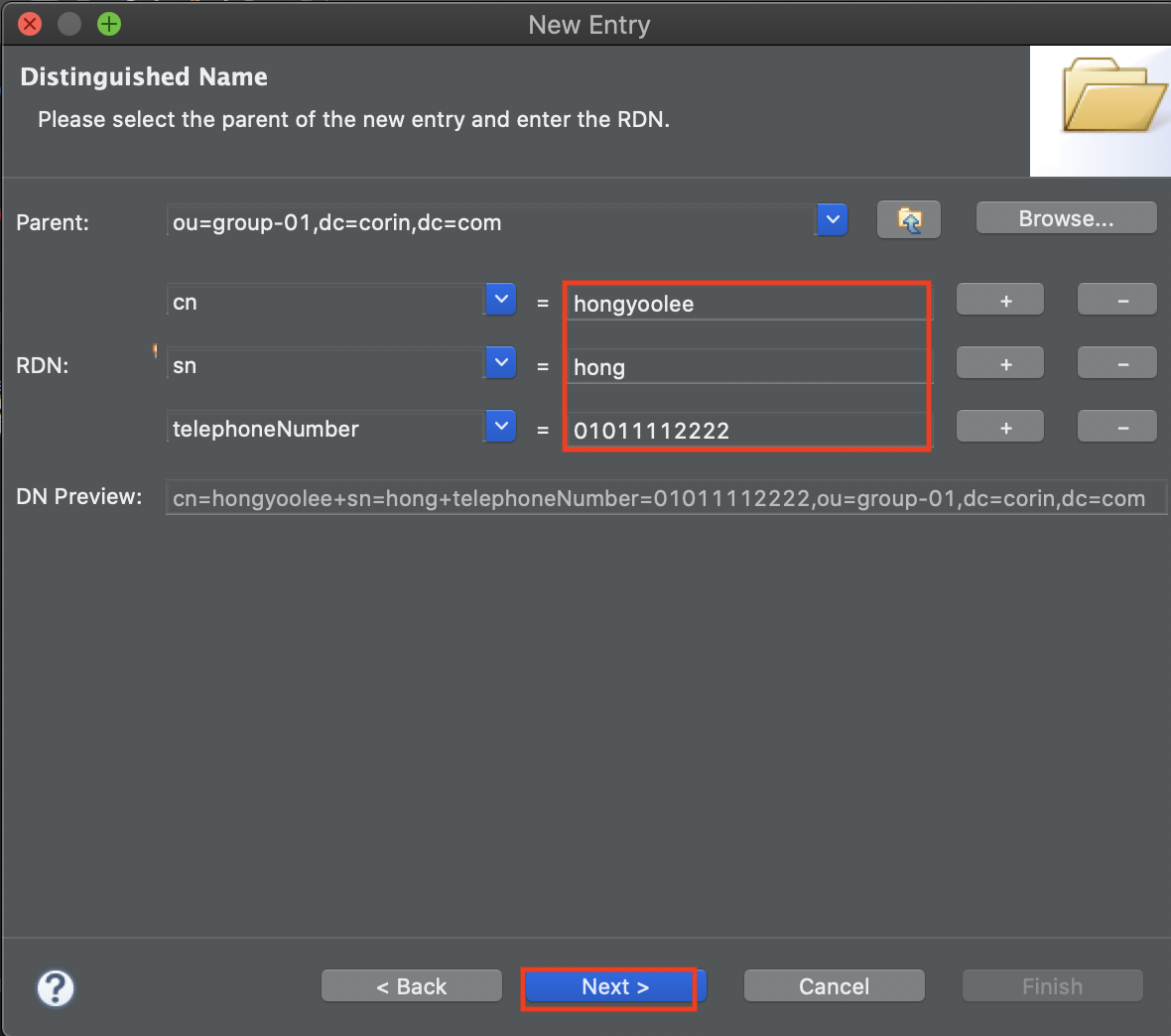 sudo ldapadd -x -D "cn=Manager,dc=corin,dc=com" -W -f create-suffix-dn.ldif