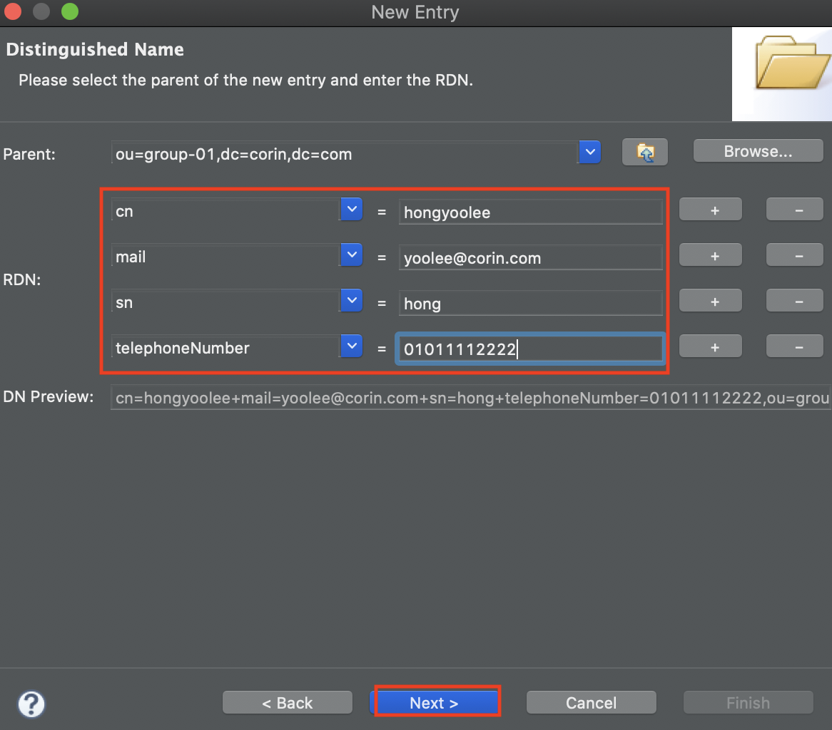 - DN (Distinguished Name) : 고유 명칭 (도메인)