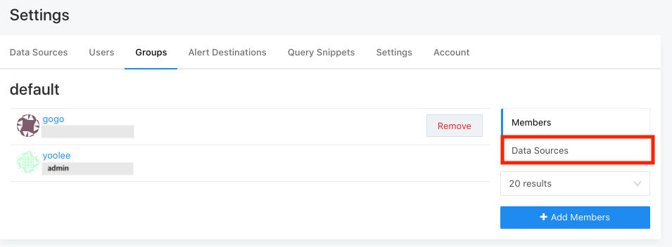 4. group 별 유저/데이터 소스 접근 권한 설정 가능