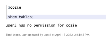 1. oozie 인터프리터에 role1, admin 권한을 가진 사용자에게만 접근 허용 (만약 set permission 에 체크 안하면 모두 접근 허용)