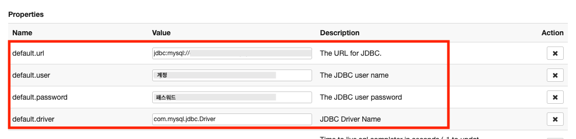 이제 접근하고자 하는 데이터베이스 정보를 넣는다.