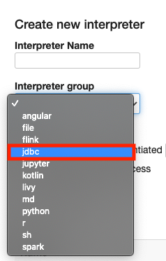인터프리터 그룹을 보면 jdbc interpreter가 추가된 것을 확인 할 수 있다.