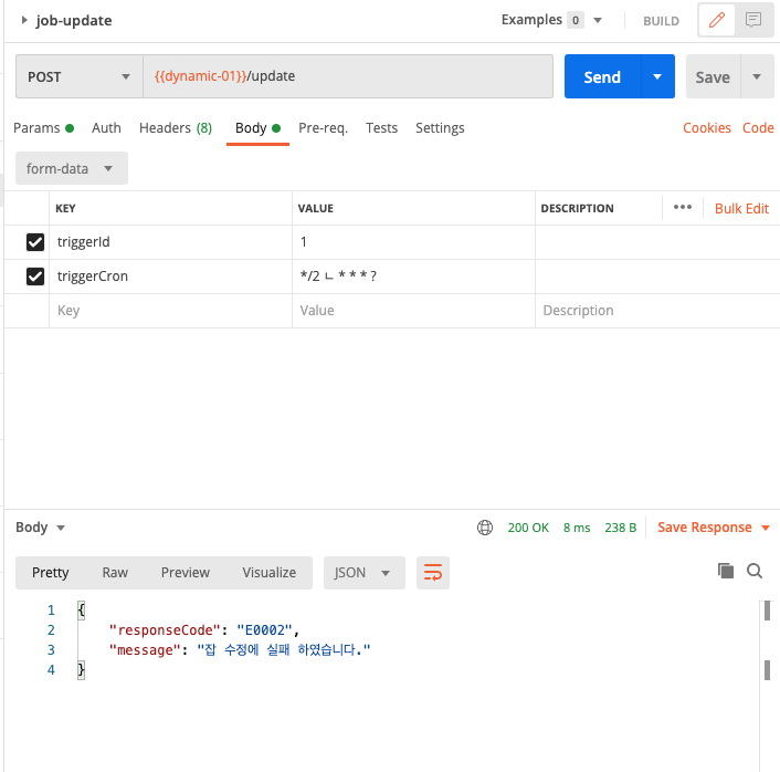 - 등록된 잡을 재등록 했을시 오류 메세지 리턴