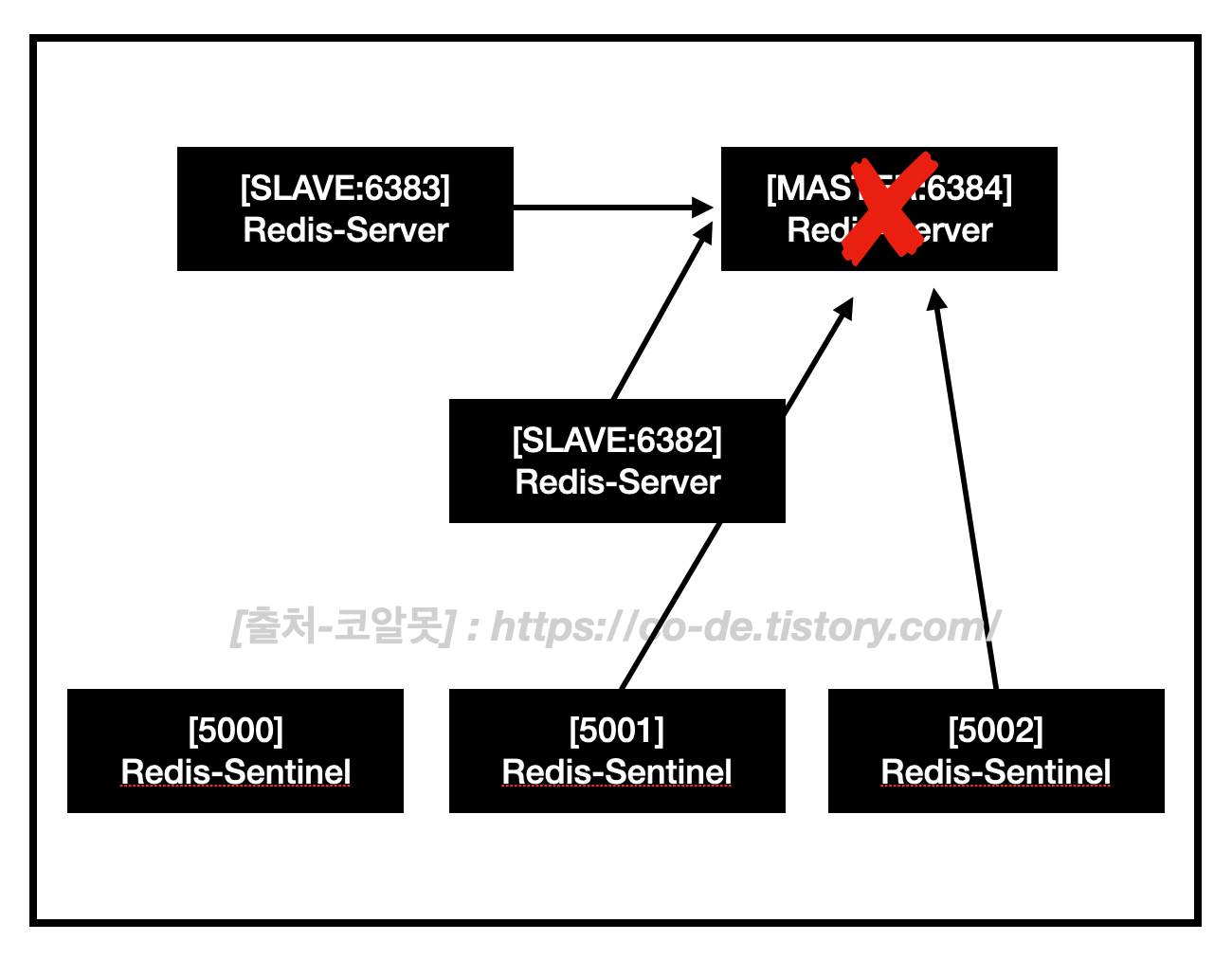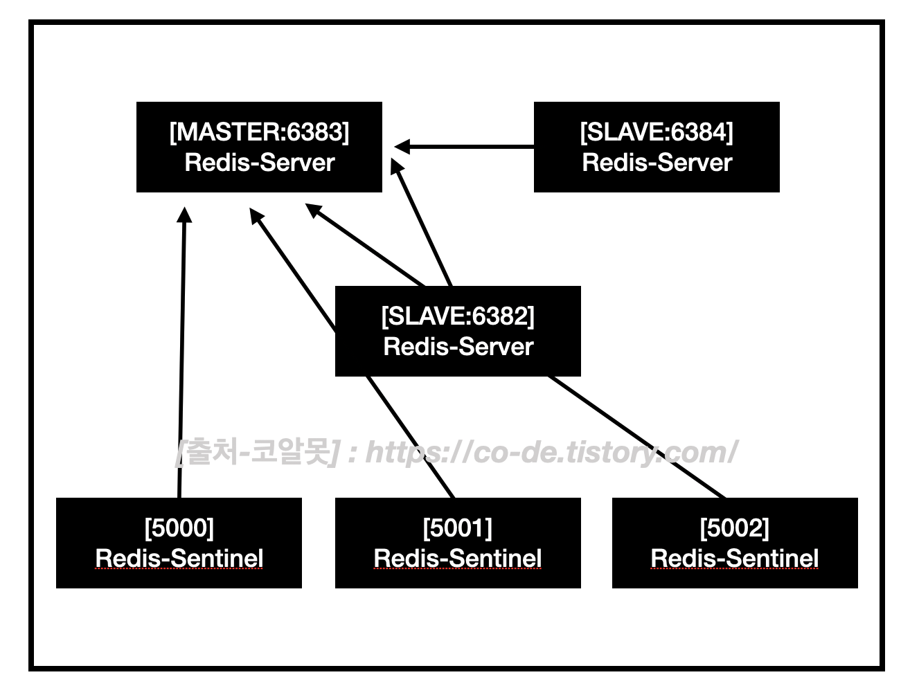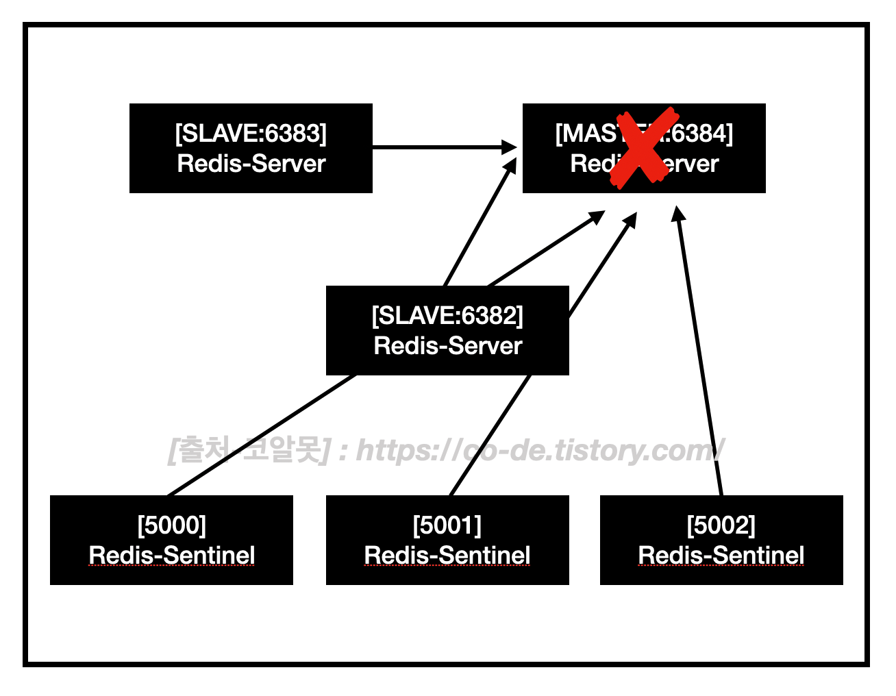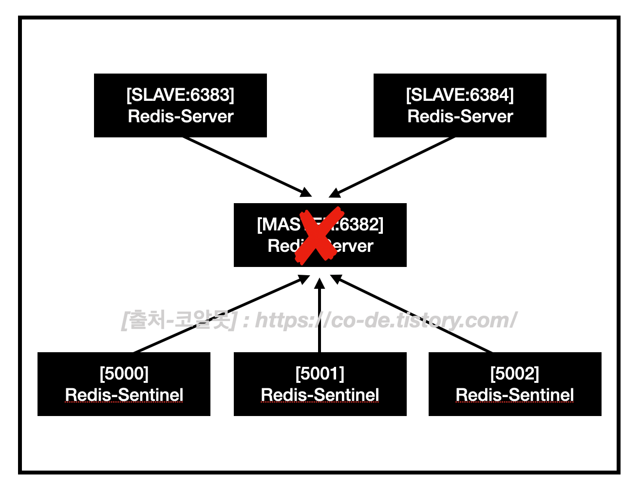 Redis Sentinel 은 장애 발생시 운영 서비스에 영향 없도록(=고가용성) 레디스 마스터 모니터링 및 자동 장애 극복 조치 (=Fail-over) 해주는 서비스 입니다.