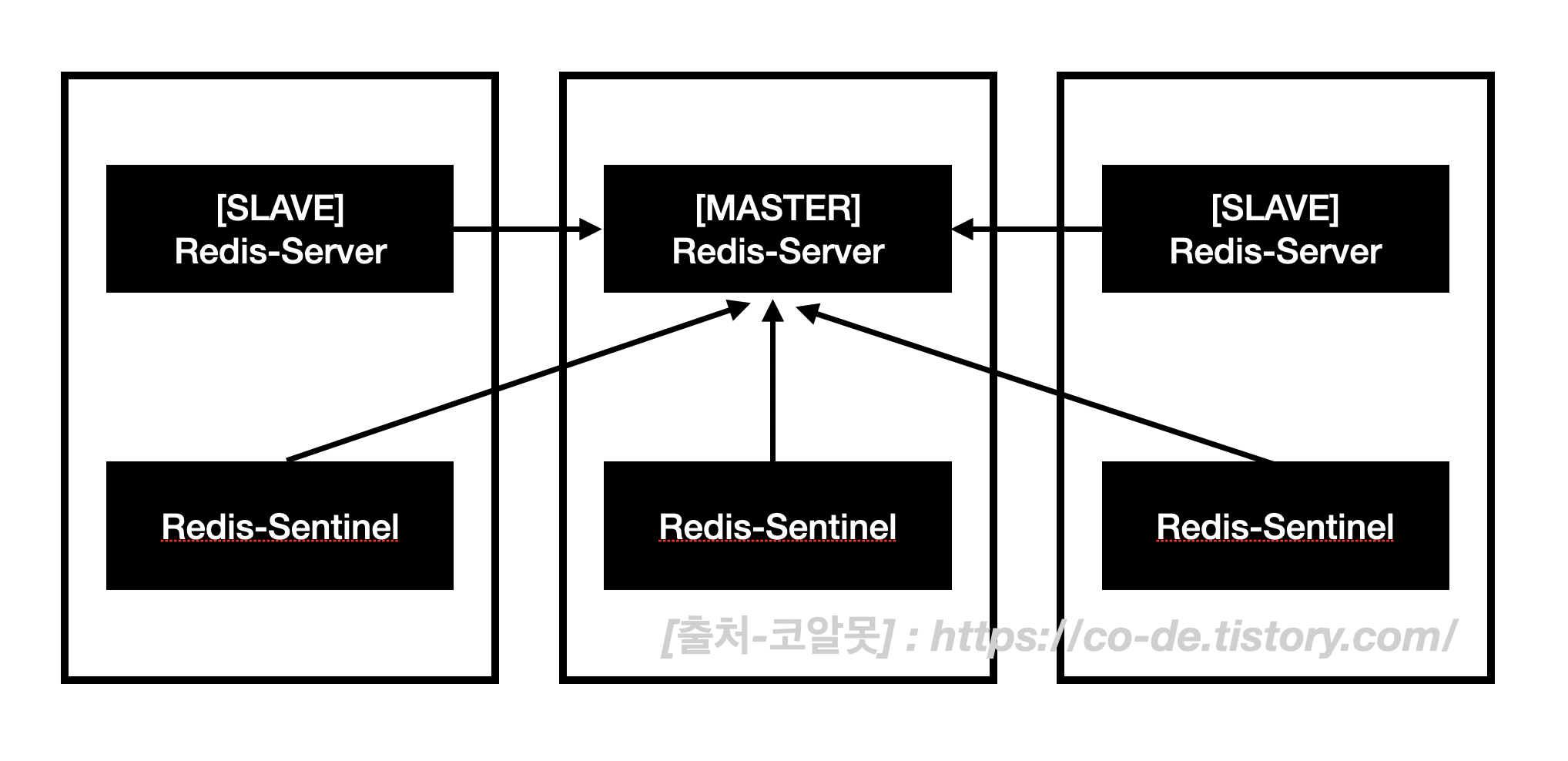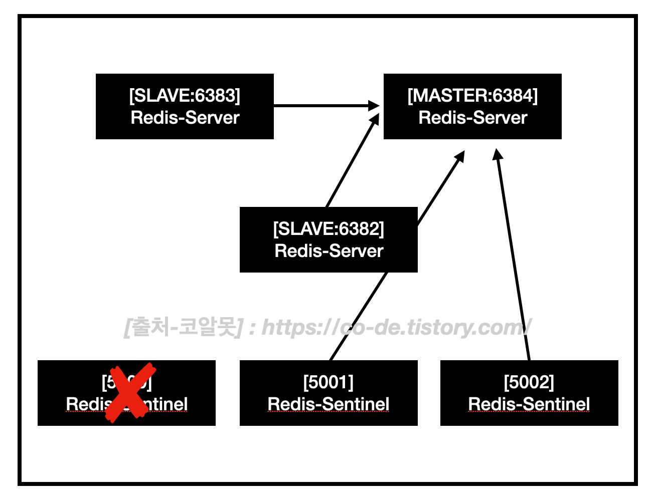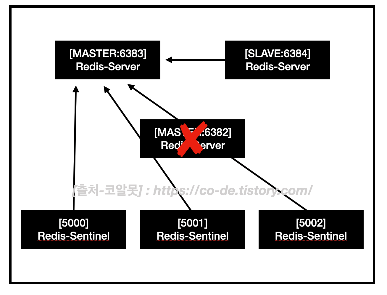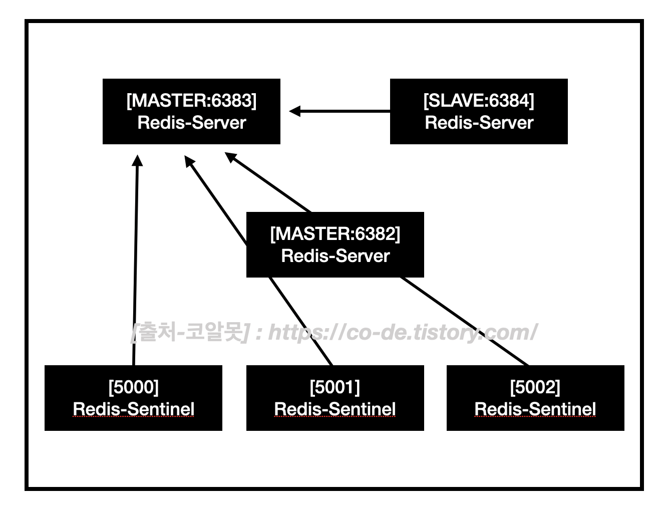Redis Sentinel 은 장애 발생시 운영 서비스에 영향 없도록(=고가용성) 레디스 마스터 모니터링 및 자동 장애 극복 조치 (=Fail-over) 해주는 서비스 입니다.