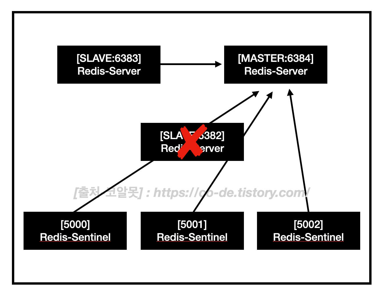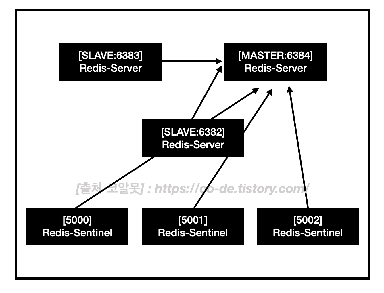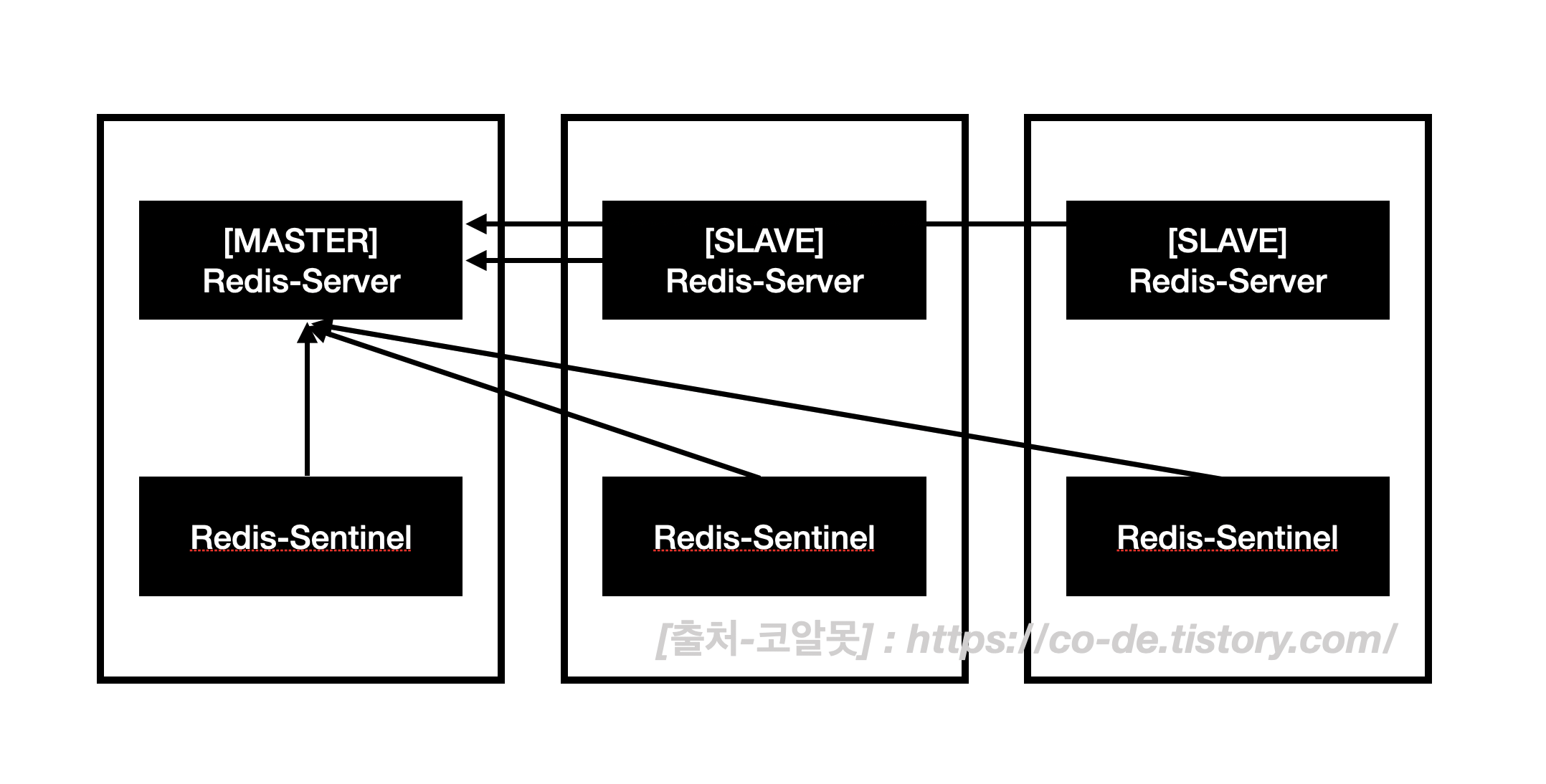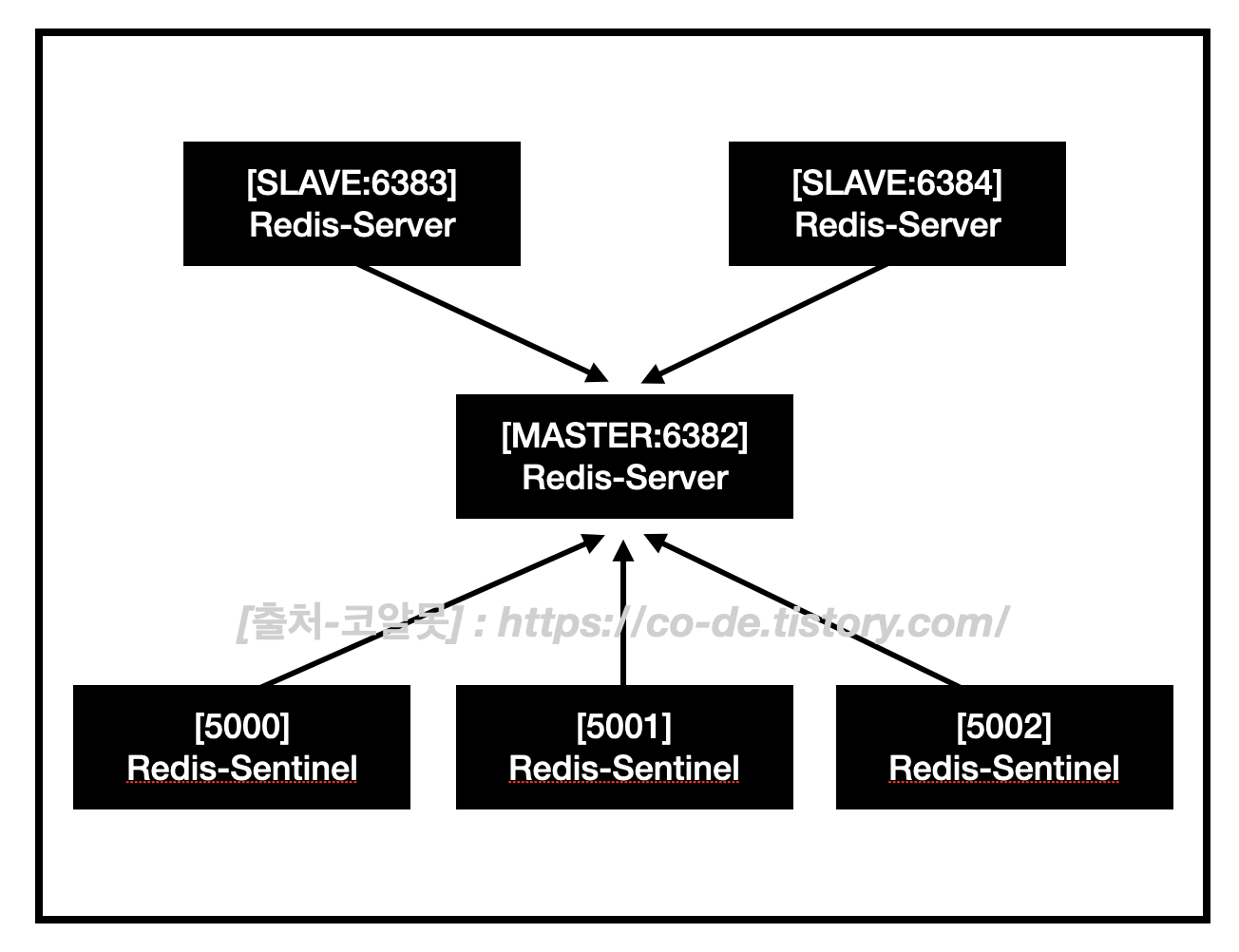 Redis Sentinel 은 장애 발생시 운영 서비스에 영향 없도록(=고가용성) 레디스 마스터 모니터링 및 자동 장애 극복 조치 (=Fail-over) 해주는 서비스 입니다.