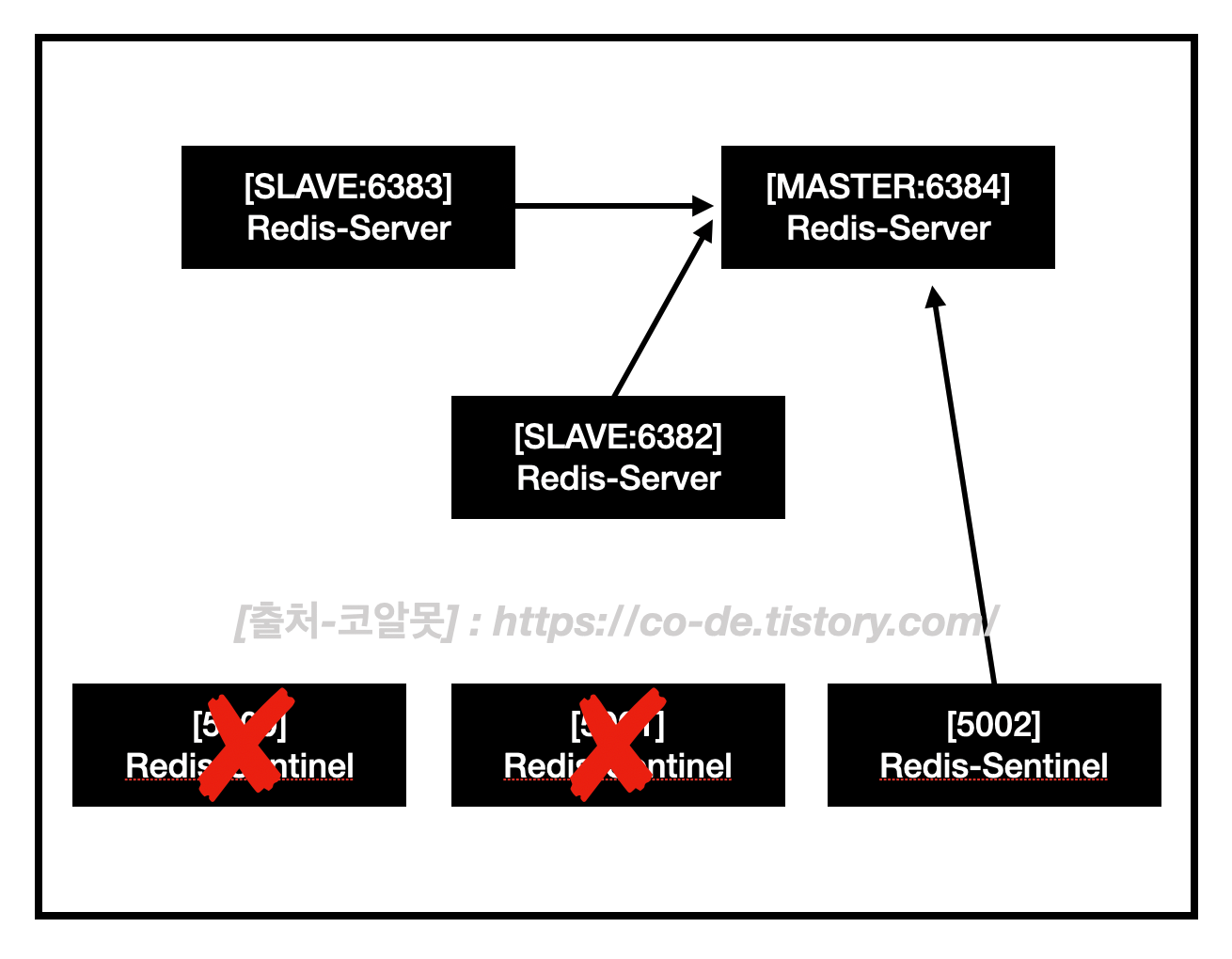 - sentinel 쿼럼수 이상 살아있으면 sentinel 죽는건 상관 없으나 이상이 살아있지 않다면, 마스터가 죽었을시 승격되지 않음