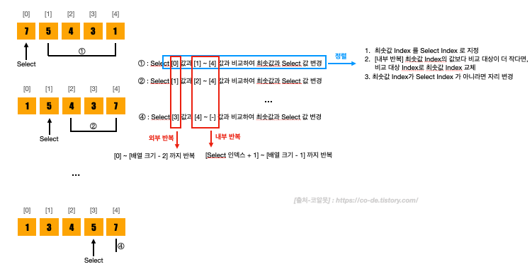 - 내부 반복 : [Select Index + 1] ~ [Index (배열 크기 -1)] 까지 반복