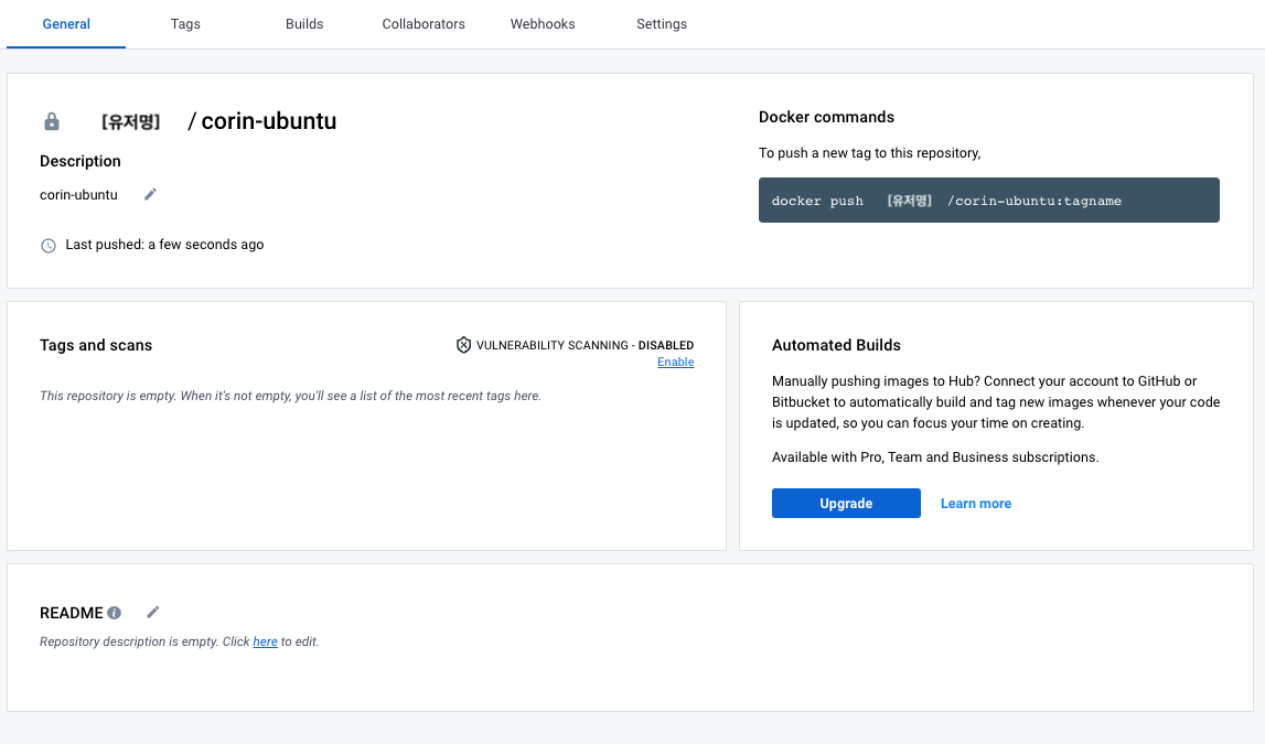 The push refers to repository [docker.io/[유저명]/corin-ubuntu]