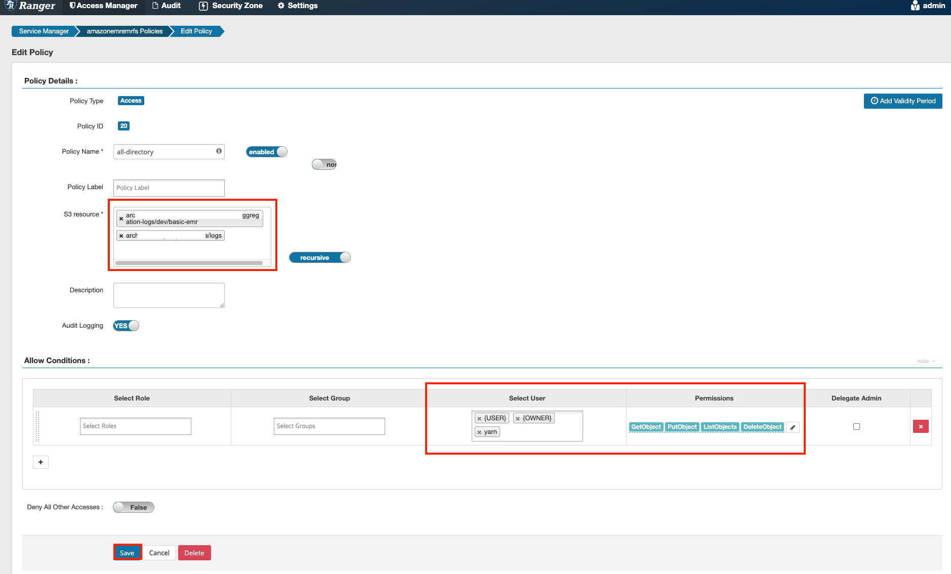 Ranger 적용된 EMR 집계 로그 S3 저장 안되는 이유 본문