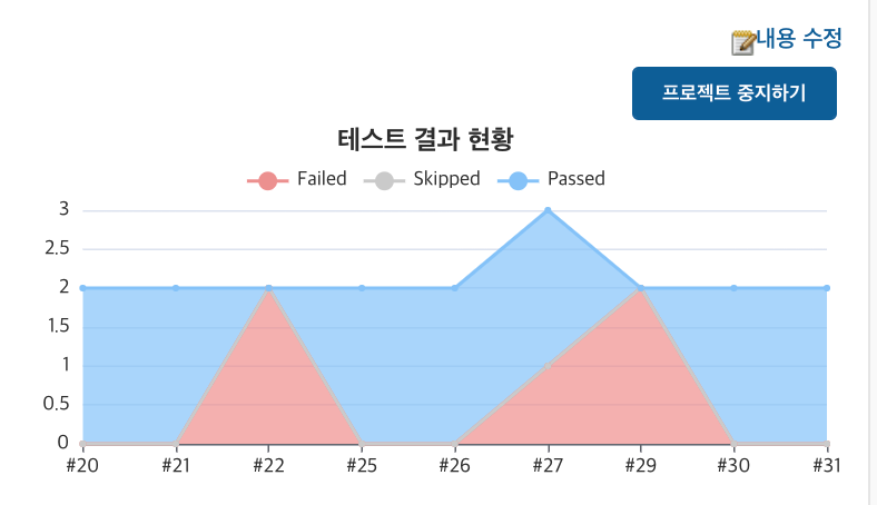 - Jenkins 프로젝트 메인으로 가면 아래와 같이 그래프로도 확인 가능하다.