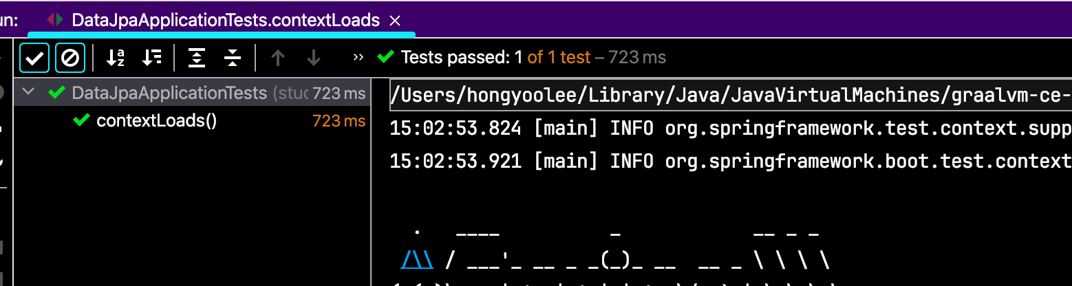 더이상 Test worker 가 뜨지 않으며 이를 통해 바로 테스트 코드를 실행함을 알 수 있다.
