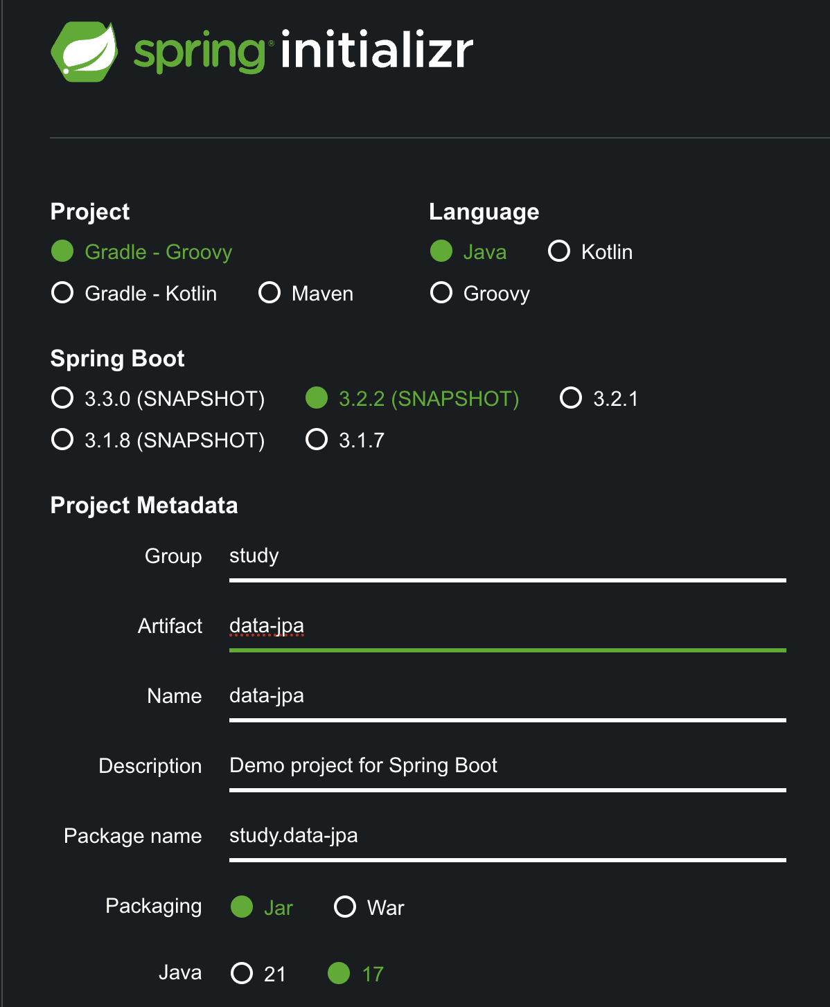 스프링 부트 스타터(start.spring.io)를 통해 프로젝트를 쉽게 생성해보도록 하자!