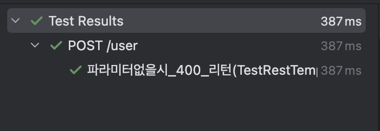 이제 다음 케이스인 '파라미터 없음 → 400 반환'를 만들어 나머지 Red + Green 단계 진행 해보자!