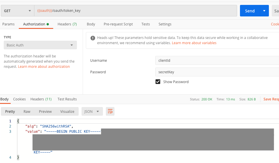 // 공개키를 직접 파일로 저장하여 불러와도 되고, 저자는 인증 서버를 직접 호출해서 서버 기동시 한번만 얻어온다.