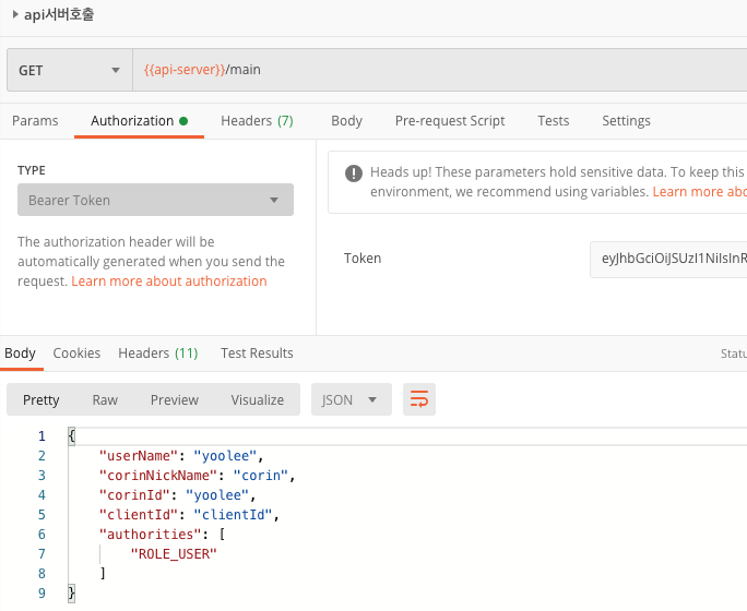 리소스 서버에 사용자 정보를 넘여주는거는 완료!