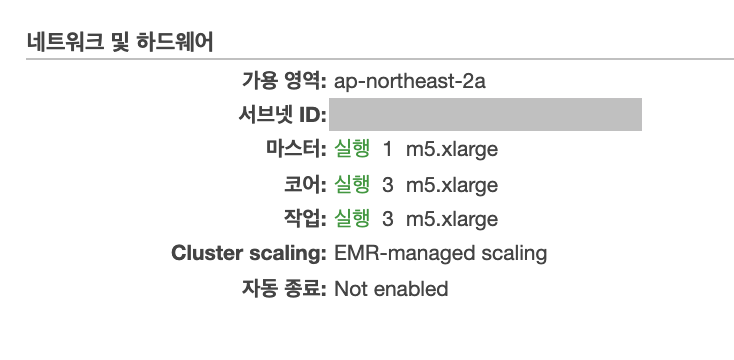 | 마지막 단계가 완료된 후 클러스터 자동 종료 | 클러스터를 사용하지 않는다면 클러스터를 종료한다. | |||
