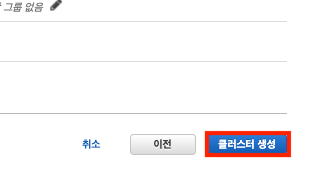 이제 설정을 마쳤다면 아래와 같이 클러스터 생성 버튼을 눌러 생성을 진행한다.