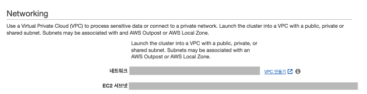 | 네트워크 | VPC(가상 네트워크)로 사용할 VPC 선택 | |||