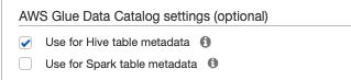 클러스터 생성시 Glue 메타 스토어를 Hive, spark 서비스의 경우 사용하도록 지정 할 수 있는데 선택 했을시와 선택 안했을시 차이를 보려고 한다.