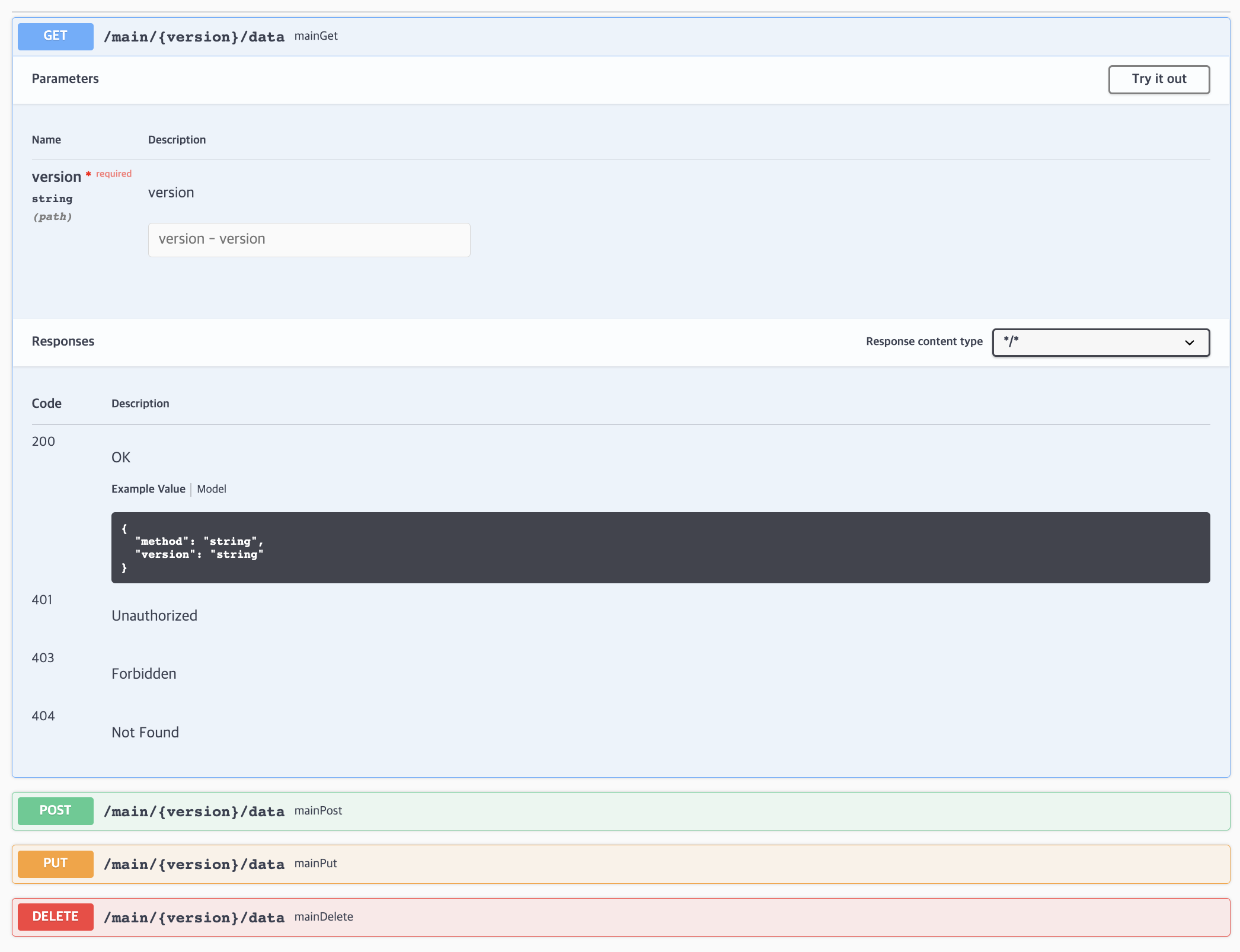 try it out 버튼을 클릭하여 실제로 서버에 호출하여 테스트할 수 있다.