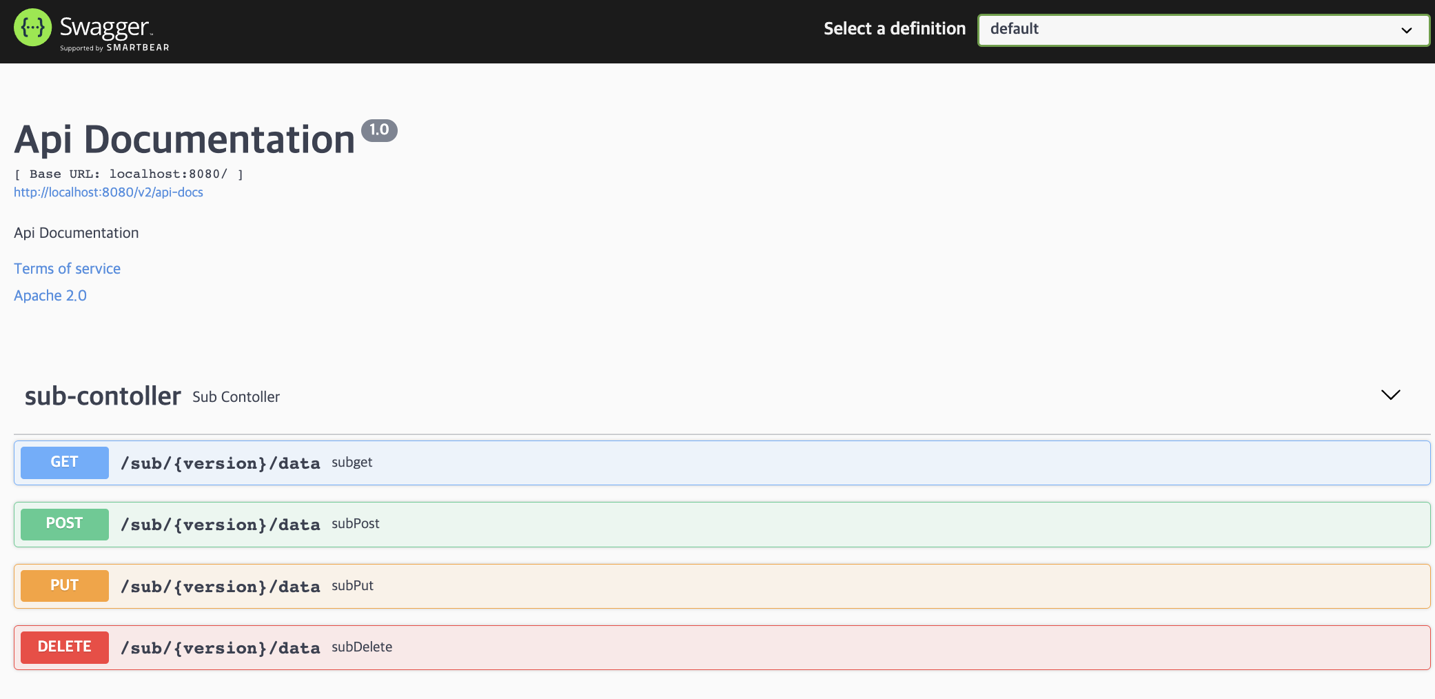 .paths(PathSelectors.ant("/sub/**")) // sub로 시작하는 path 에 대해 규격서를 만든다.