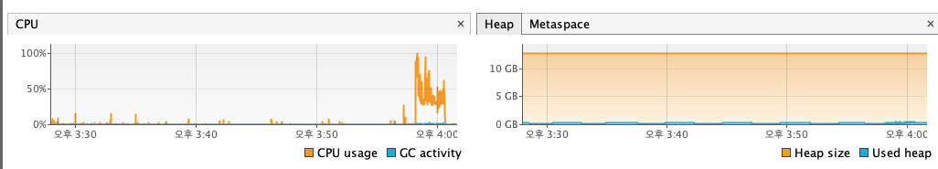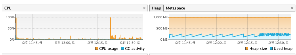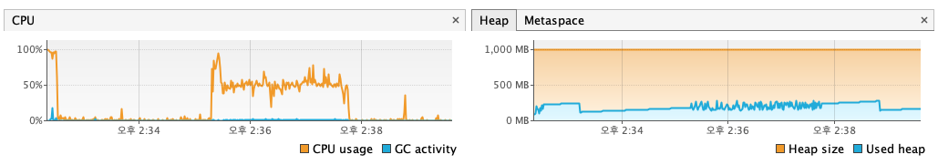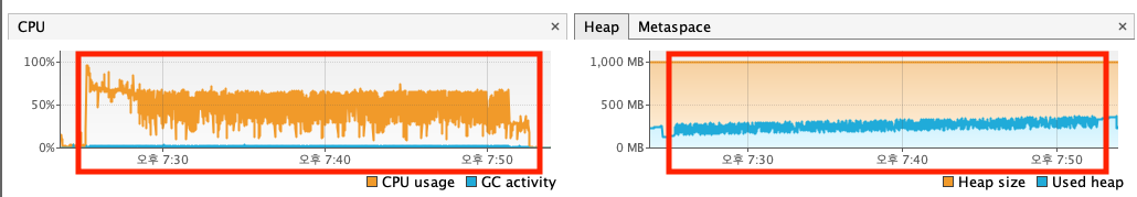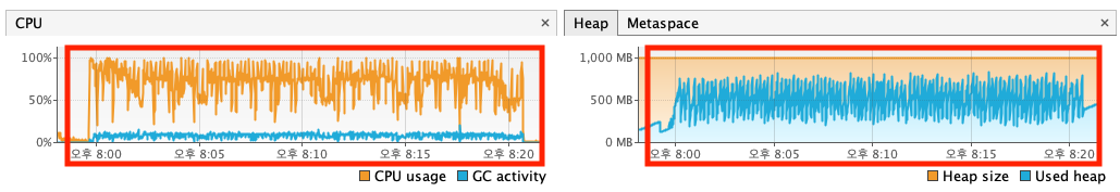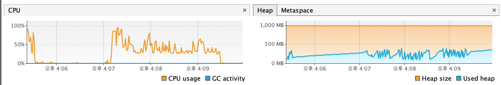 | memory | 최대 280MB | 최초 70%/ 그외 20% 미만 | 변함 없음 | 100,000 | 9분 |