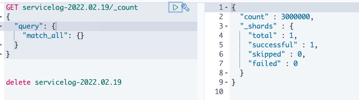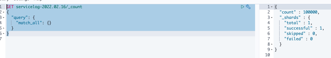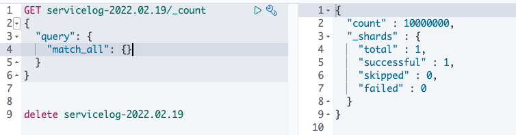 $ curl -XGET 'localhost:9200/servicelog-2022.02.19/_count'