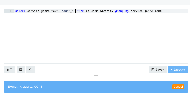 쿼리를 작성한뒤 Excute 를 클릭하면 쿼리가 제출 된다.