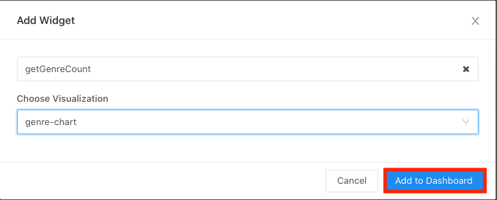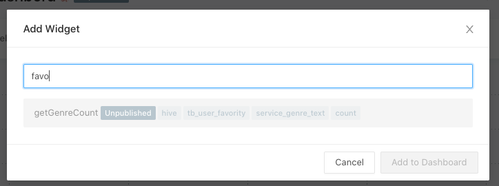다시 Add Widget을 눌러 쿼리를 불러오면 정상적으로 쿼리가 활성화 되어있다. (색상이 회색 > 하얀색으로 변경 됨)