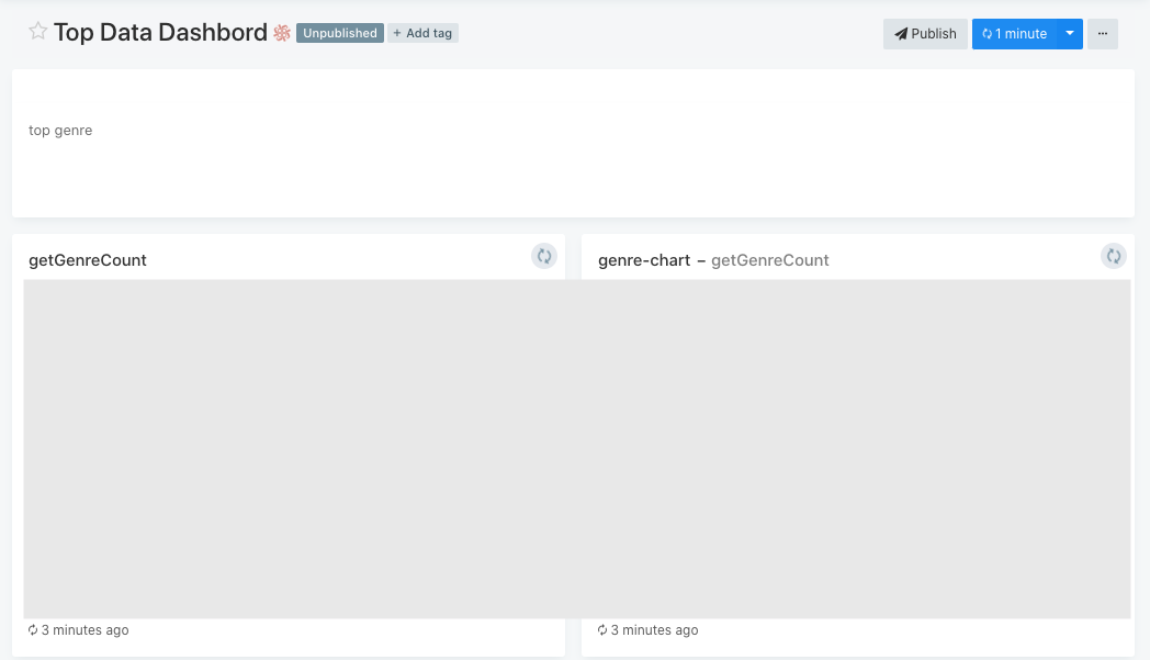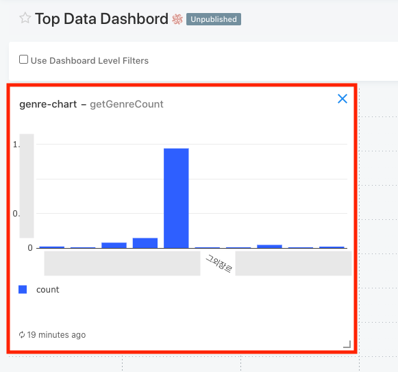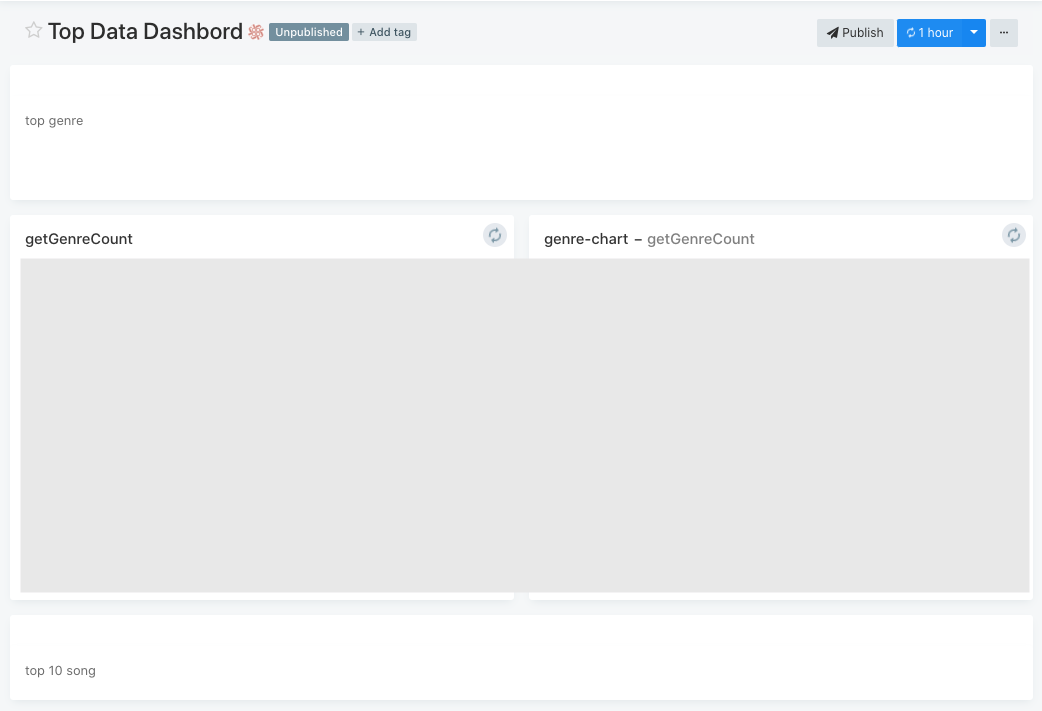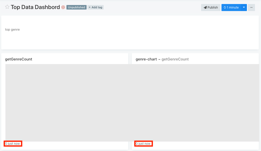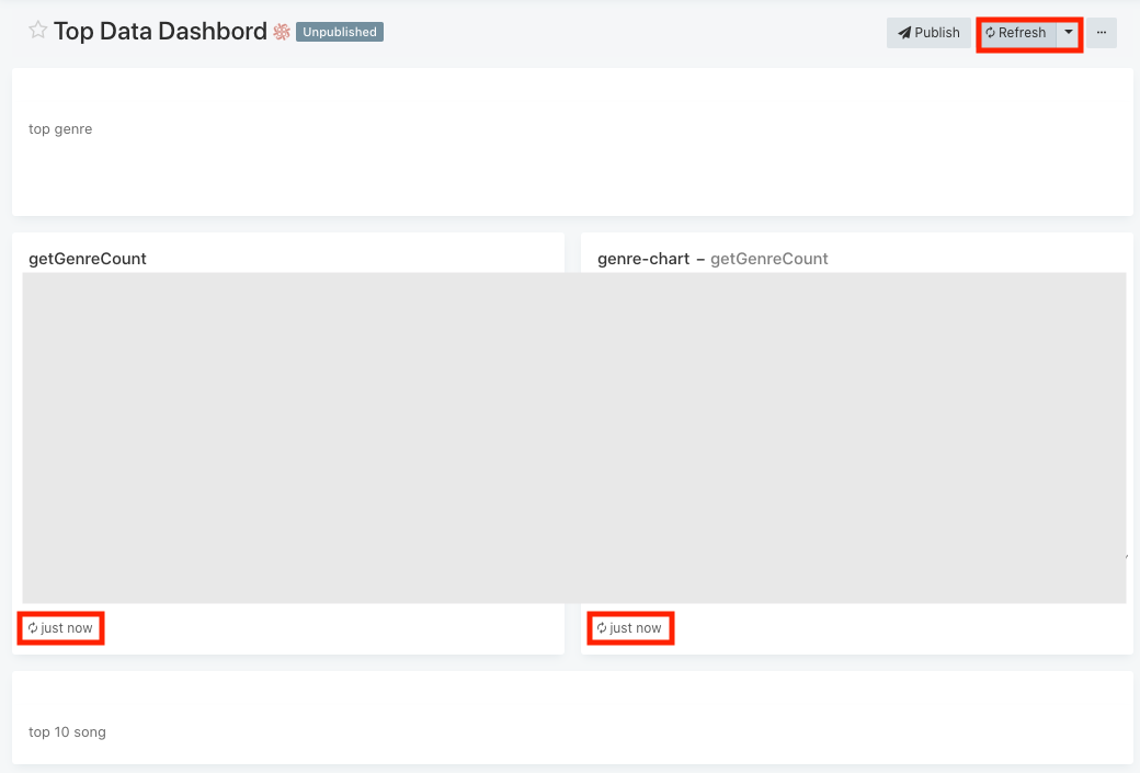 그렇기에 상단에 refresh 를 클릭하여 대시보드에 사용된 쿼리를 서버에 재 요철하여 전체 데이터를 새로 불러올 수 있다.