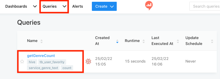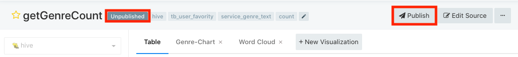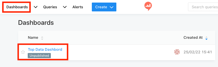 대시보드 생성은 잠시 멈추고 쿼리를 publish 하기 위해 만들어둔 쿼리 수정할 수 있는 페이지로 가서 해당 쿼리를 선택한다.