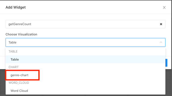 우선 'Add Widget' 를 눌러 기존에 만들어둔 쿼리 불러온다.