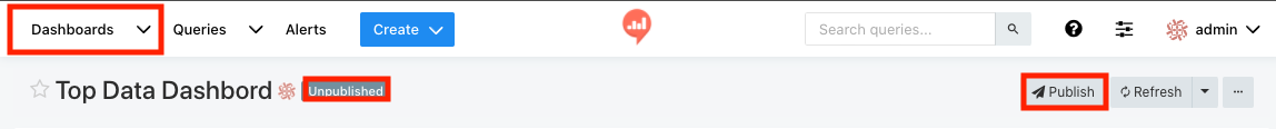 아래와 같이 공유를 원하는 대시보드를 선택한뒤 publish 버튼을 클릭한다.