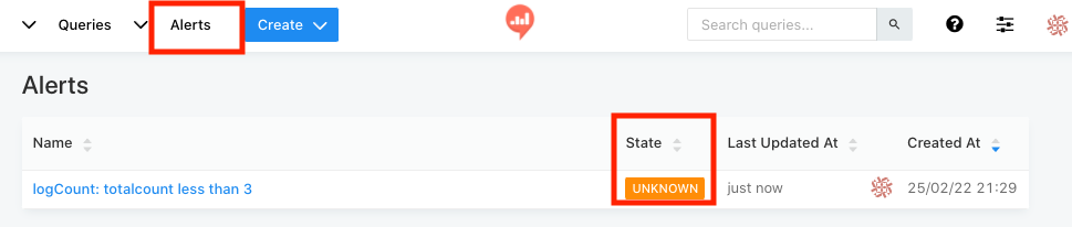 알람 상태를 redash 에서 확인해보면 UNKNOW > TRIGGERED 로 변경 되었다.