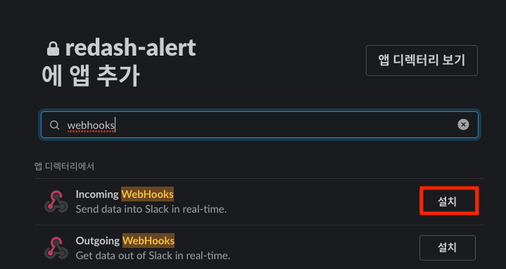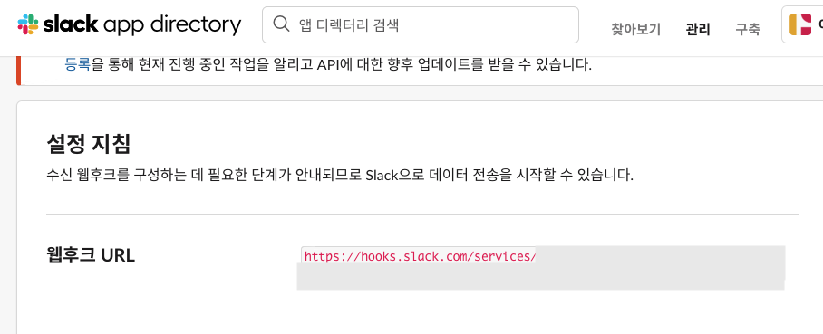 그전에 slack 에 webhooks 라는 앱을 slack 에 설치하여 통신 해야한다.