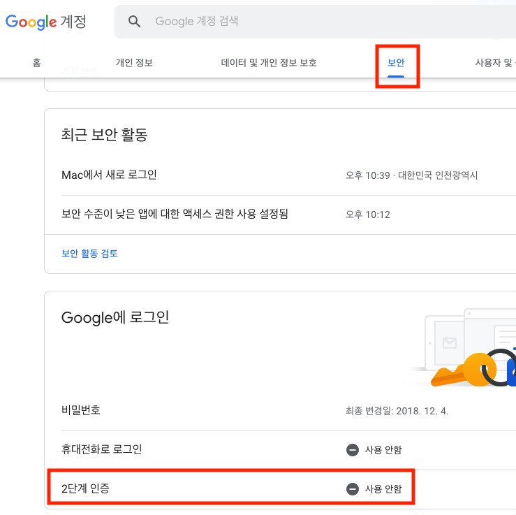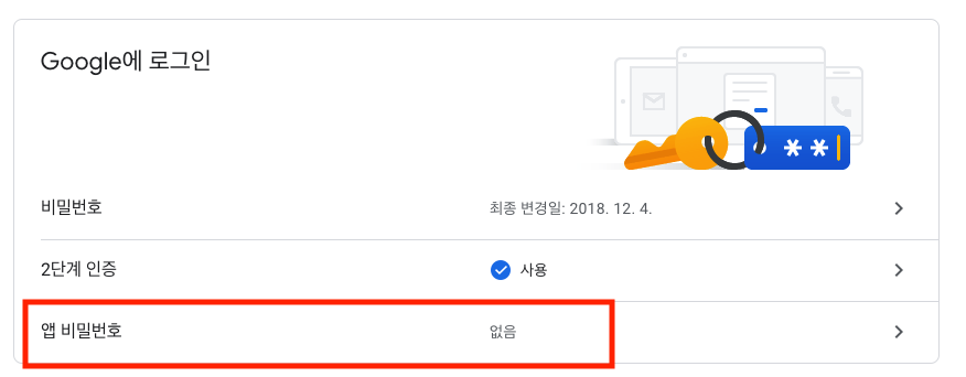 우선 2차 비밀번호가 설정 안되어있다면 앱비밀번호를 생성할 수 없으니 2차 비밀번호 설정 한다.