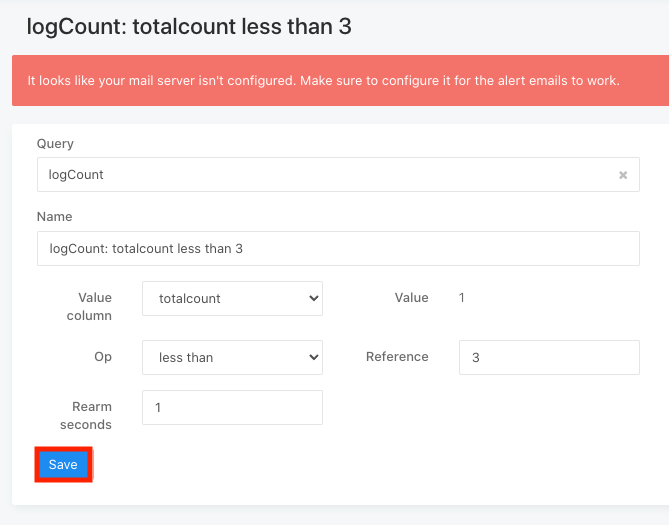 로그 수가 특정 카운트 이하로 떨어졌을시 알람을 발생시키는 실습을 진행해본다!