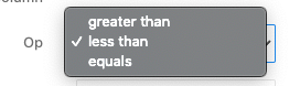 OP 의 경우는 아래와 같이 설정 가능 하다. (text, int 칼럼 선택해도 선택 할수 있는 OP 종류는 동일)